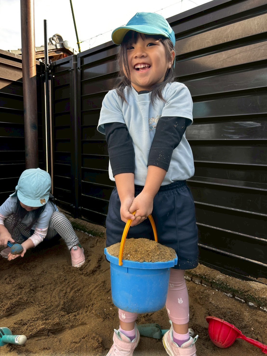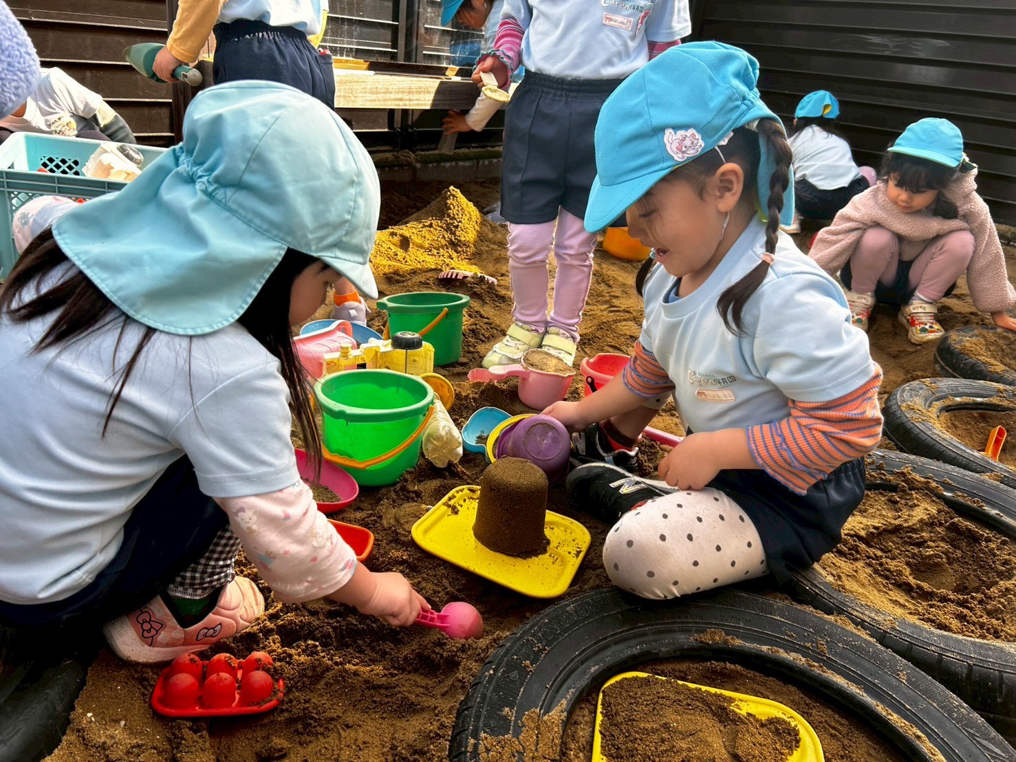 折り紙の後は園庭へ🏃‍♀️砂遊びや鬼ごっこ、ジェスチャーゲームにかくれんぼと次々に遊びを考えだしながらみんなで楽しんでいました☺️「仲間入れて〜」「いいよ!じゃあこうしよう」と言葉が飛び交う中できりん組さんが中心となり遊びを展開させていました🥰