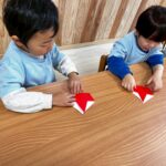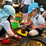 折り紙の後は園庭へ🏃♀️砂遊びや鬼ごっこ、ジェスチャーゲームにかくれんぼと次々に遊びを考えだしながらみんなで楽しんでいました☺️「仲間入れて〜」「いいよ!じゃあこうしよう」と言葉が飛び交う中できりん組さんが中心となり遊びを展開させていました🥰