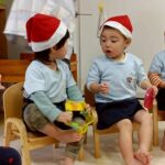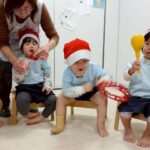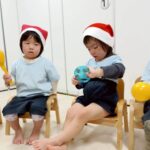 タンバンリンや鈴🛎️、大人気のトライアングルで『あわてんぼうのサンタクロース』を合奏しました😊自由に鳴らす子!タイミングで鳴らす子!どちらにしてもとても楽しそうに✨⭐️鳴らしてましたよ❗️