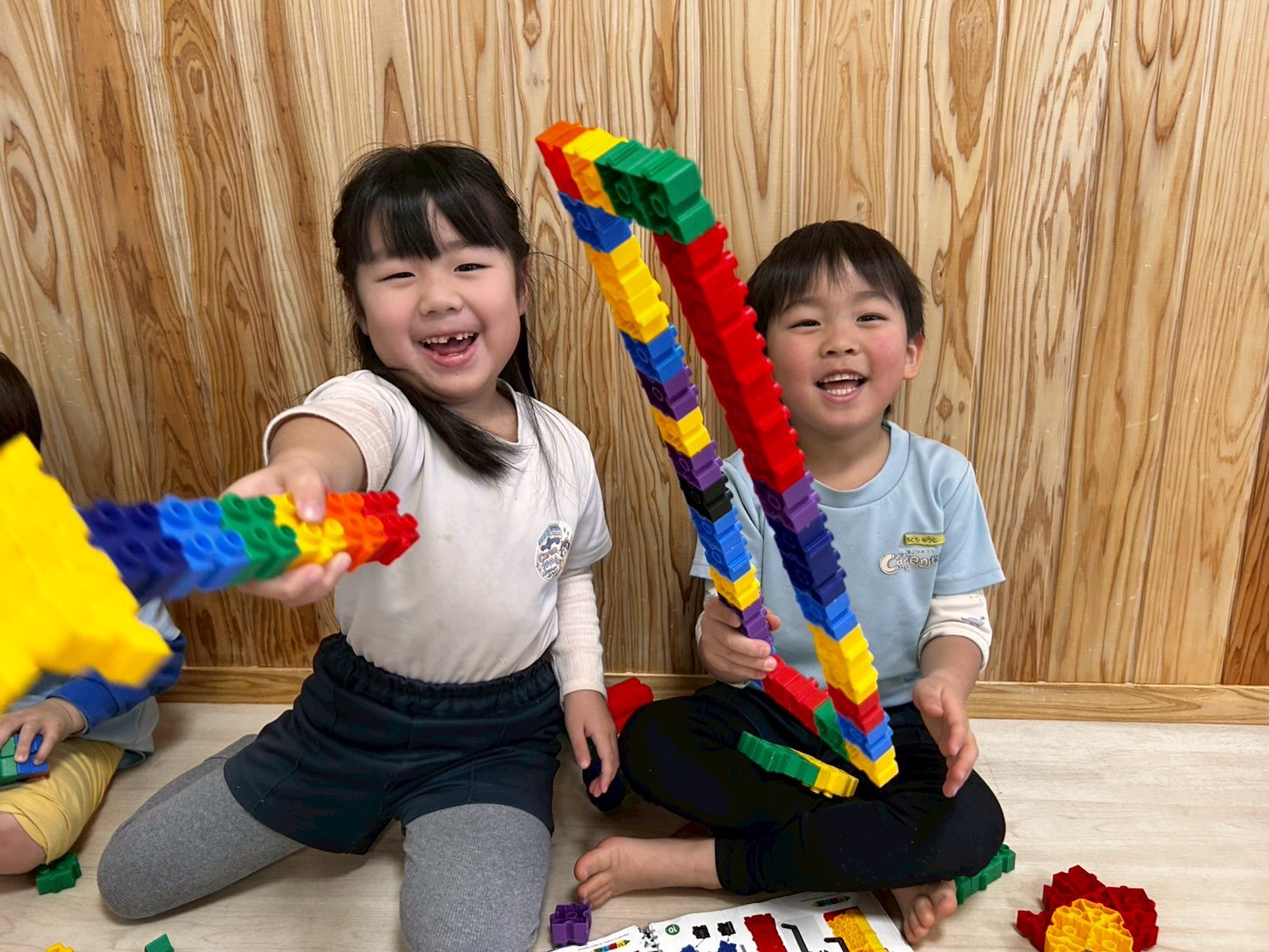 レッスンの待ち時間には塗り絵、ブロックに分かれて遊び、うさぎ組さんは新しく準備してもらった色鉛筆を嬉しそうに使っていました🥰ブロックでは、オリジナルの作品が次々と登場お友だちや先生に自慢していましたよ😍💕そんなに夢中になって遊んでいても、レッスンの時間になるとスッと切り替えてレッスンに参加している姿に成長を感じました🤭✨