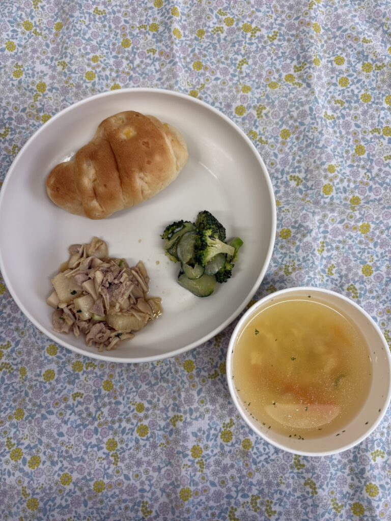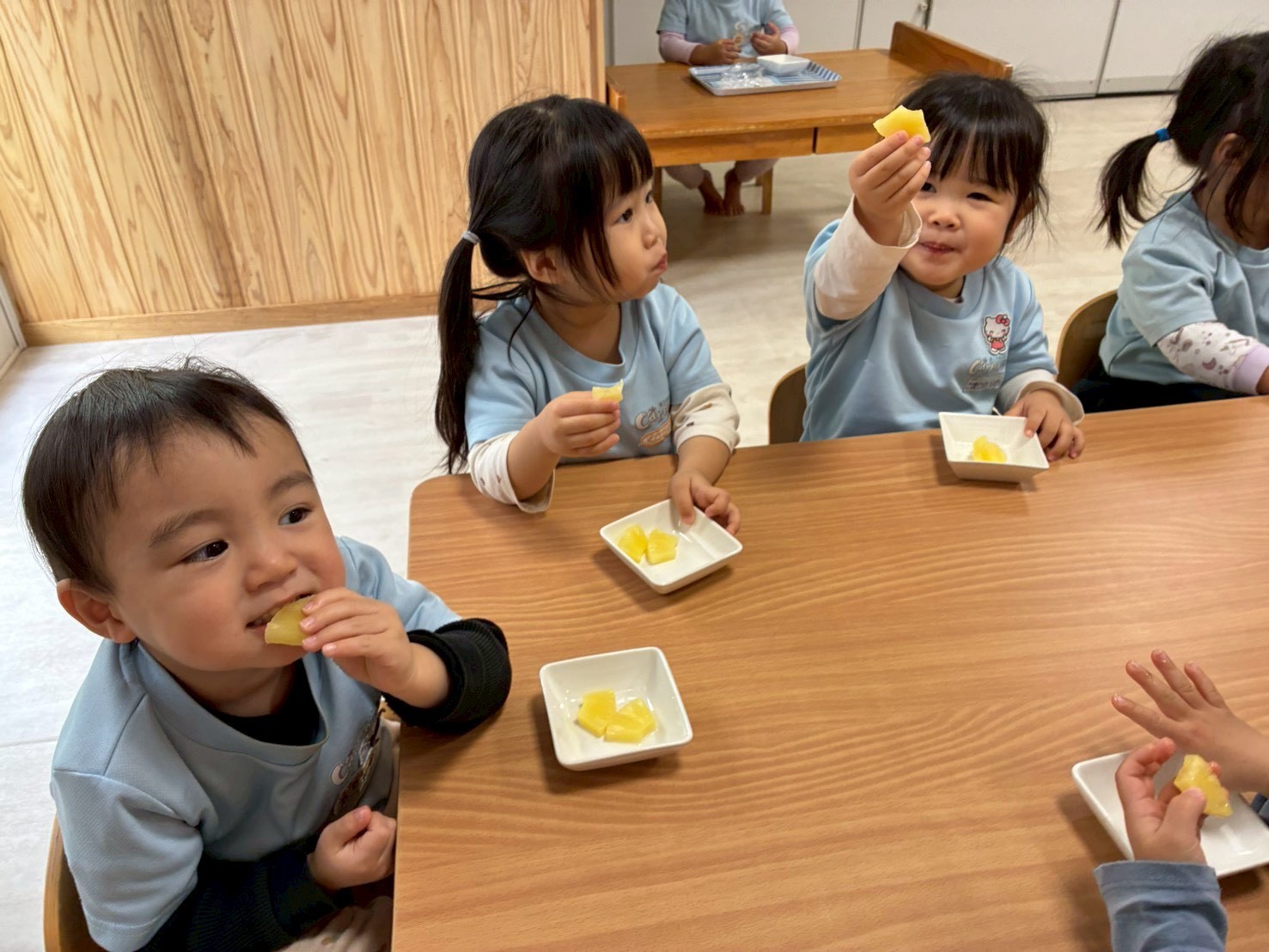 神社の帰りに沖田中央公園に寄りました🤗日も出てきて、沢山歩いたあとだったのでみんな上着も脱いで遊具にかくれんぼ、鬼ごっこと思いきり遊びました🤩【新宮園の今日の給食です】