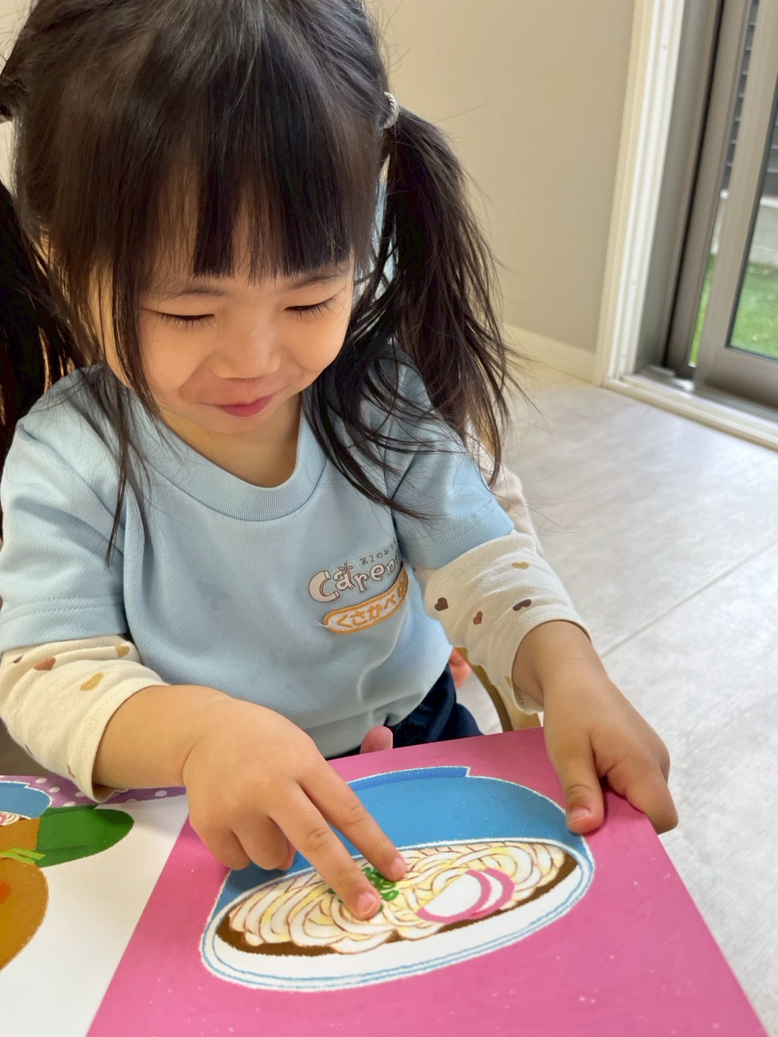 あいさつを可愛くしながら絵本の内容を楽しんでいましたよ(楽しい)
