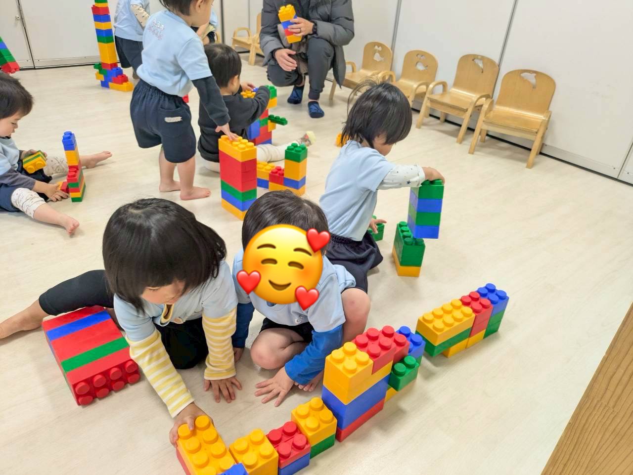 その後はアンパンマンのおもちゃで自由に遊びました🥐製作でペンギンのお腹に手形も押して大忙し。刺激的な一日を過ごしました😊