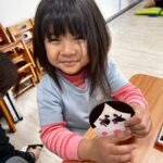 まずは見本を見ながら表情を描き、それから糊付けです。今回は使うクレヨンの色の指定があったり見本を通りに描くことが目標でしたが、みんなとっても上手でした🤭✨