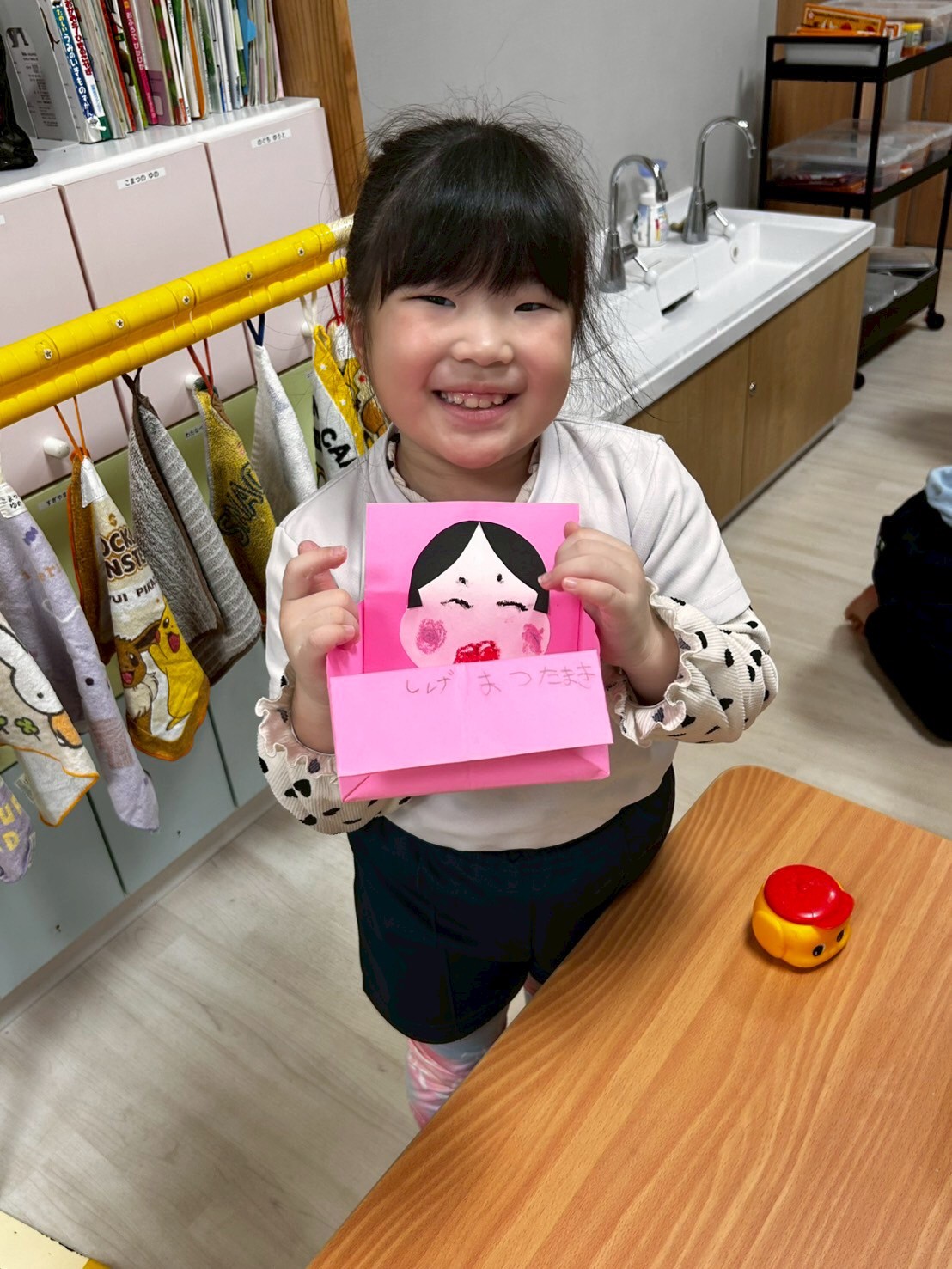 製作では前回の豆入れに福の神を貼り付けました❣️