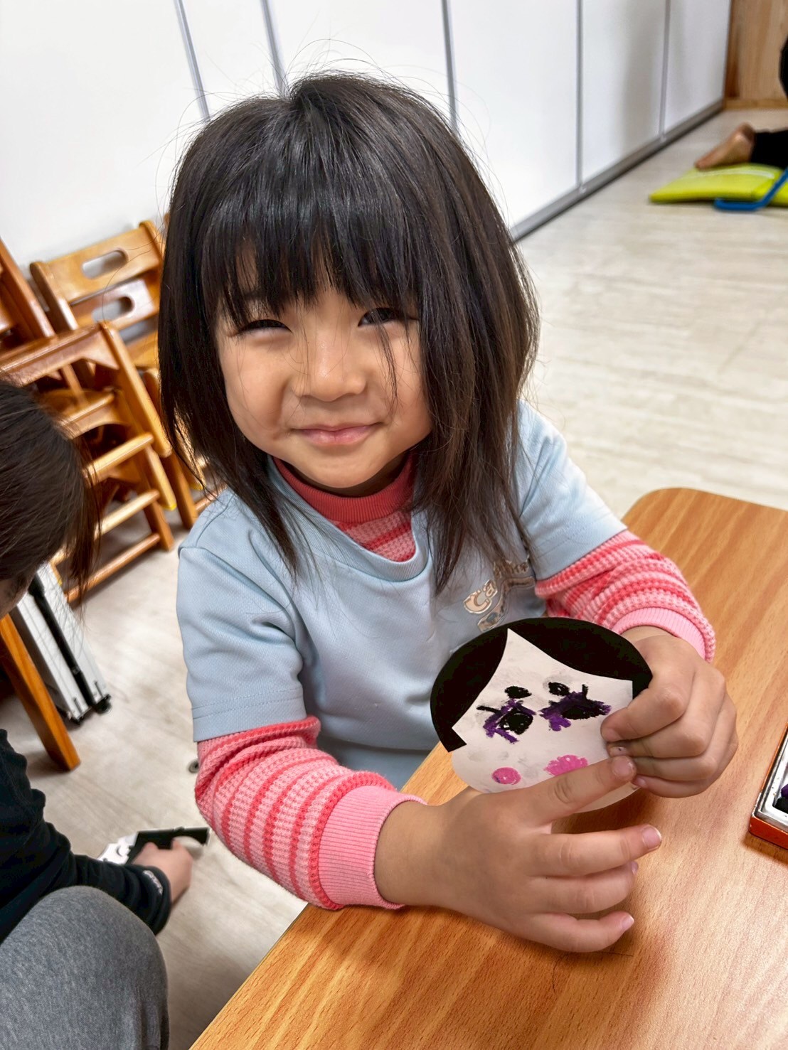まずは見本を見ながら表情を描き、それから糊付けです。今回は使うクレヨンの色の指定があったり見本を通りに描くことが目標でしたが、みんなとっても上手でした🤭✨