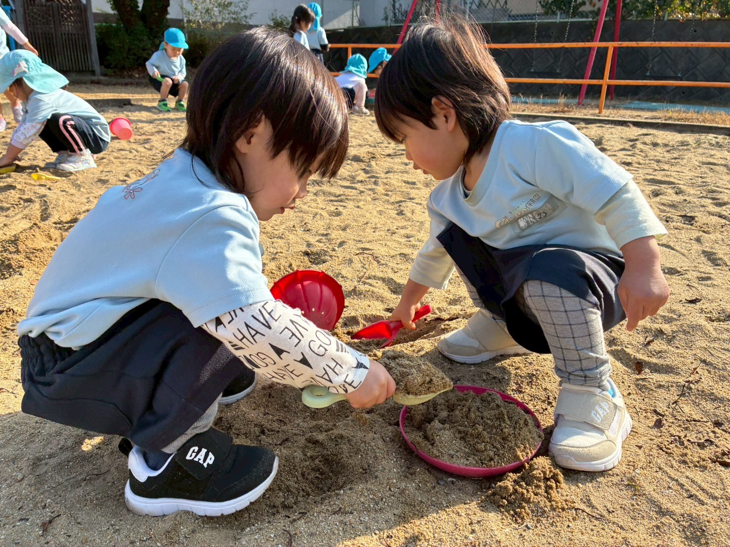 公園では、お砂場でケーキ屋をしてみたり🎂