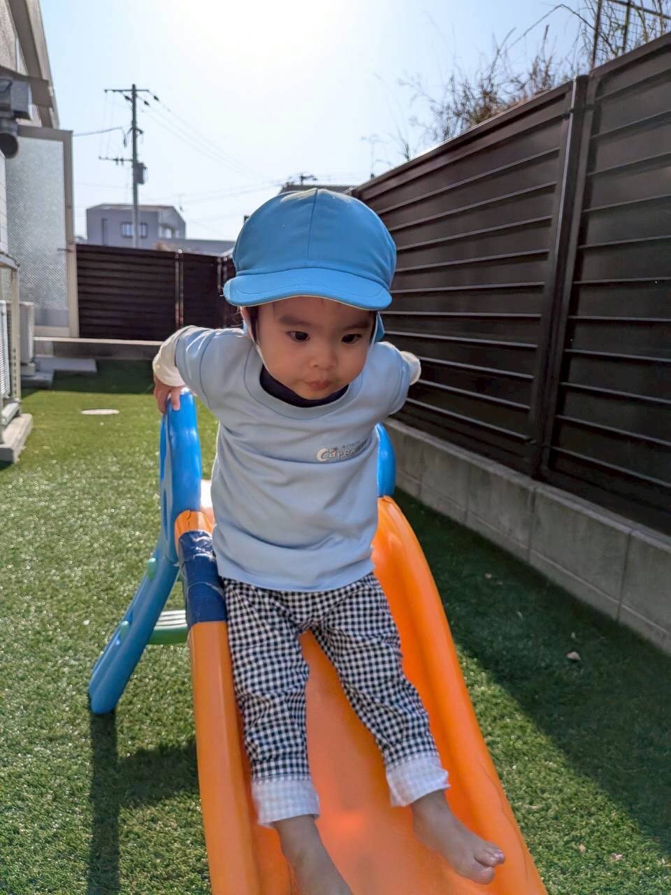名前を言ってー😆と言わんばかりに色んな乗り物を繰り返し指さして先生が名前を言うのを嬉しそうに聞いていました🥰園庭では滑り台に興味を示し先生に順番を整理😄してもらいながら繰り返し滑って楽しんでいました😁✨