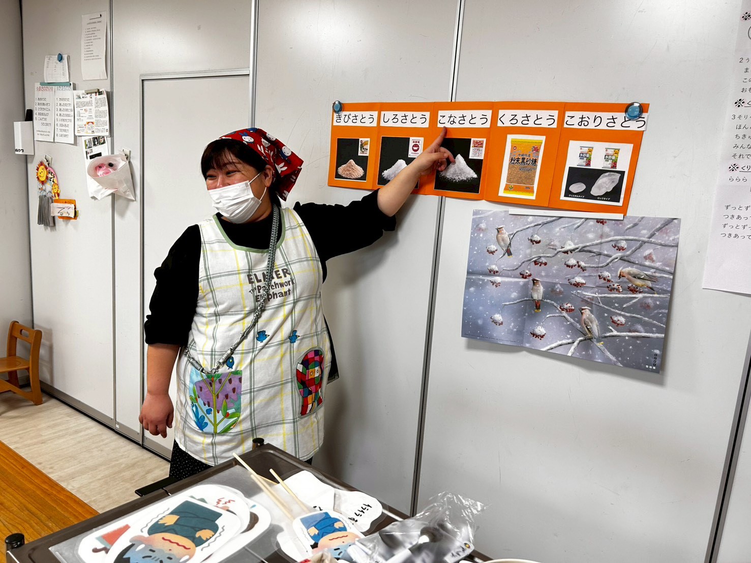 砂糖はとっても美味しいけど、とりすぎると疲れやすくなったり、イライラしたり、寒くなったりと体に良くないことが起こることや砂糖を選ぶならきび砂糖の方がいいことなどを知りました👀‼️