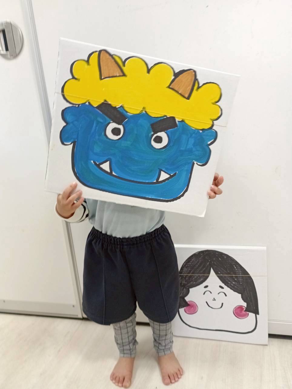 紙芝居を見ながら『鬼はそとー👹❗️』と必死の声🤭