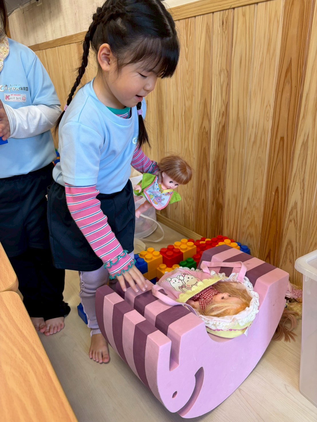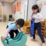 お家ごっこやお風呂ごっこもして「いぇーい」「こんちわ」「バイバーイ」「じゃま」等元気な声が飛び交っていましたよ😊✨【りす・ぱんだぐみ】
