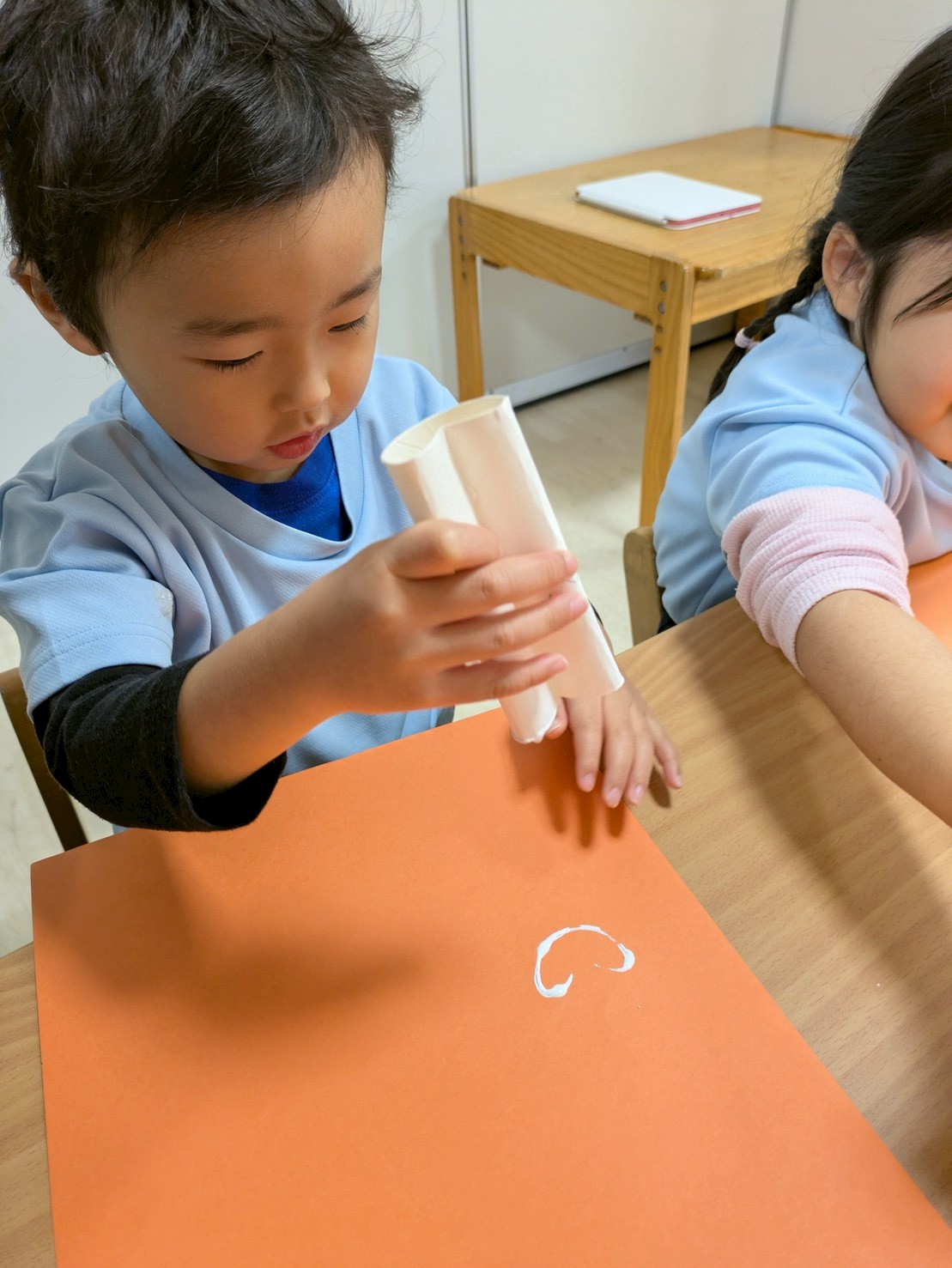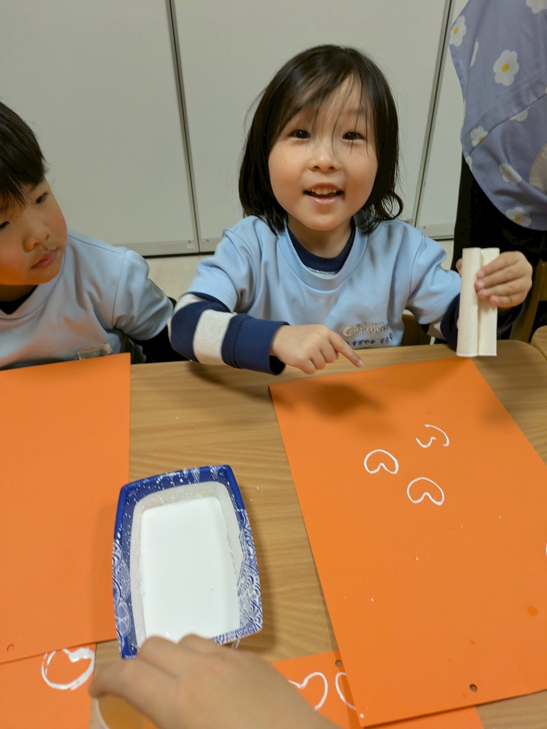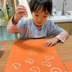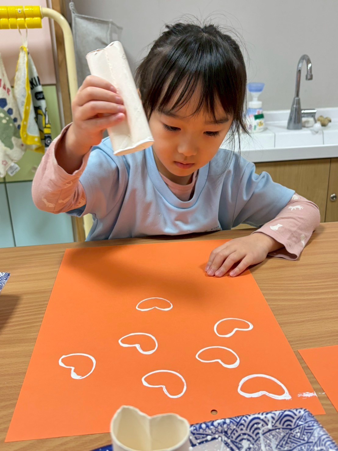 その後、トイレットペーパーの芯をハートの形にしてスタンプをしました🩷💚🩵画用紙一杯にハートができて可愛くなりました💕😍
