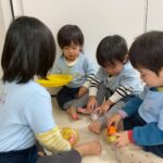 その後、鬼👹にまめ🫘を投げる練習をして楽しみました❗️【うさぎ・こあら・きりんぐみ】