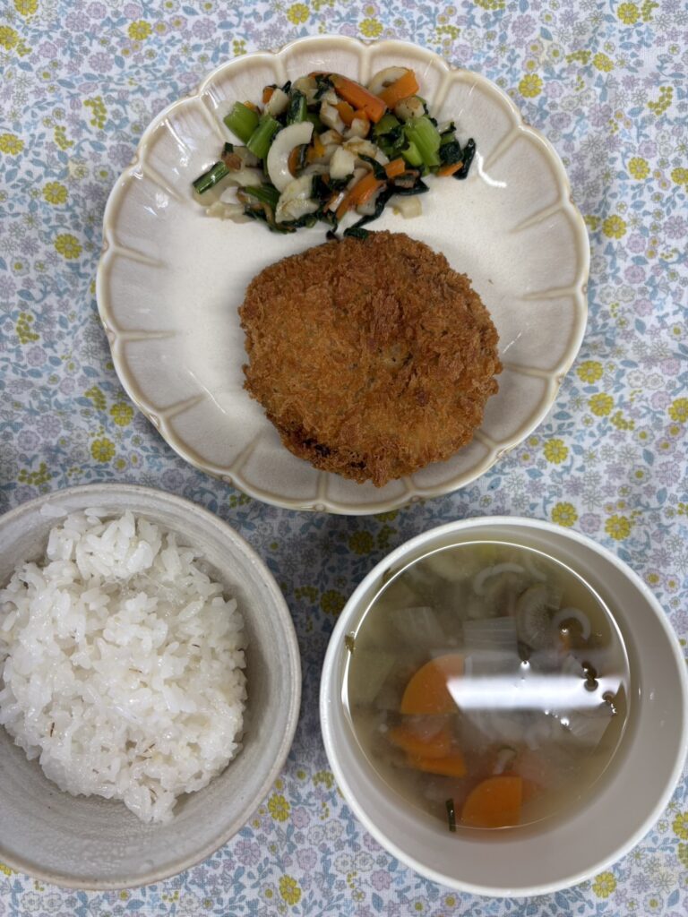 製作が終わると園庭で縄跳びの電車ごっこをしたり、保育室でメルちゃんやソフトブロックで遊びました‼️時々、縄跳び電車の進行方向が違い、ケンカして怒りん坊に、、、😠仲直りしてすぐに遊びだせる切り替えの速さが以上児さんらしいな〜と感じました✨【新宮園の今日の給食です】