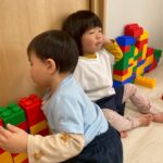その後ブロック遊びでは🟥🟦🟩🟨何色が好き?と好きな色を選んだり、高く積みたい✨と積んでみたり、お城を作ったよ〜と楽しんでいました🏯