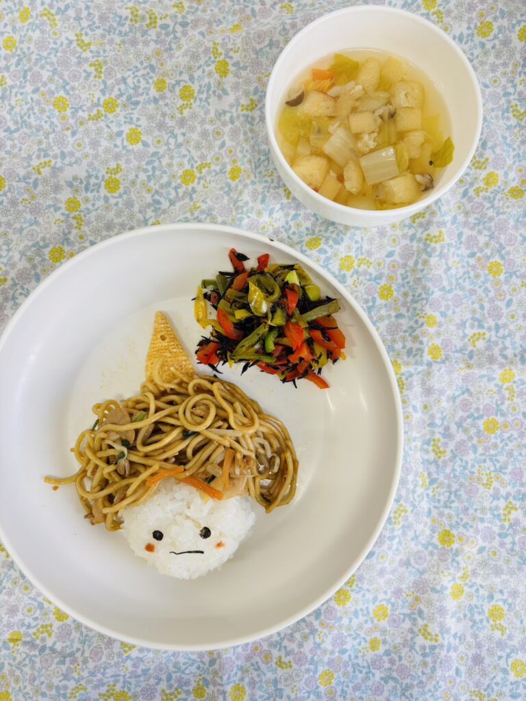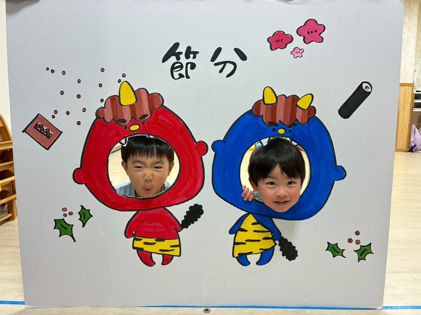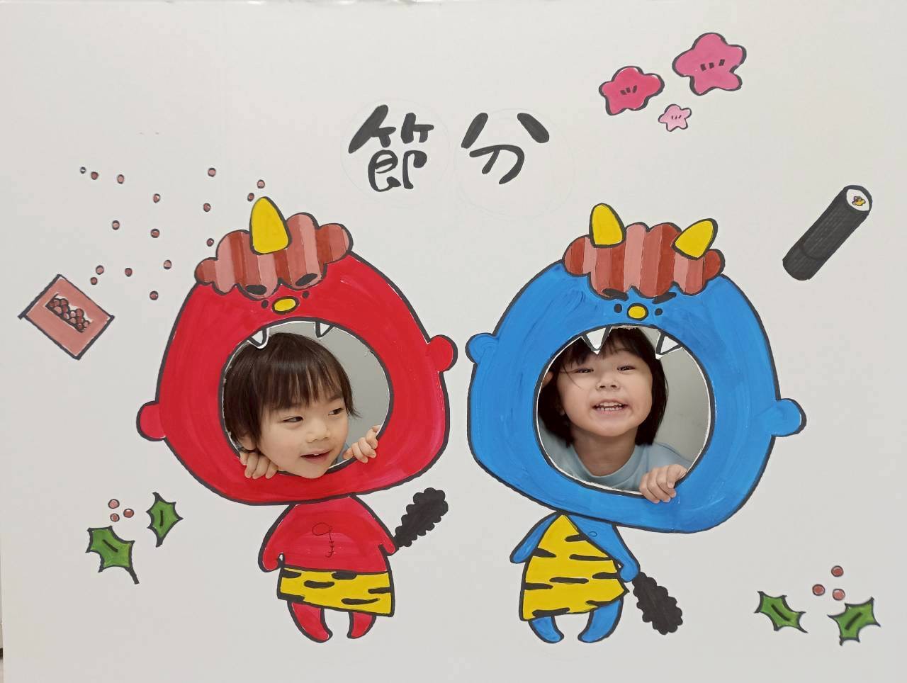 給食には可愛い💕鬼さんがいてみんなで食べて退治しました🤗