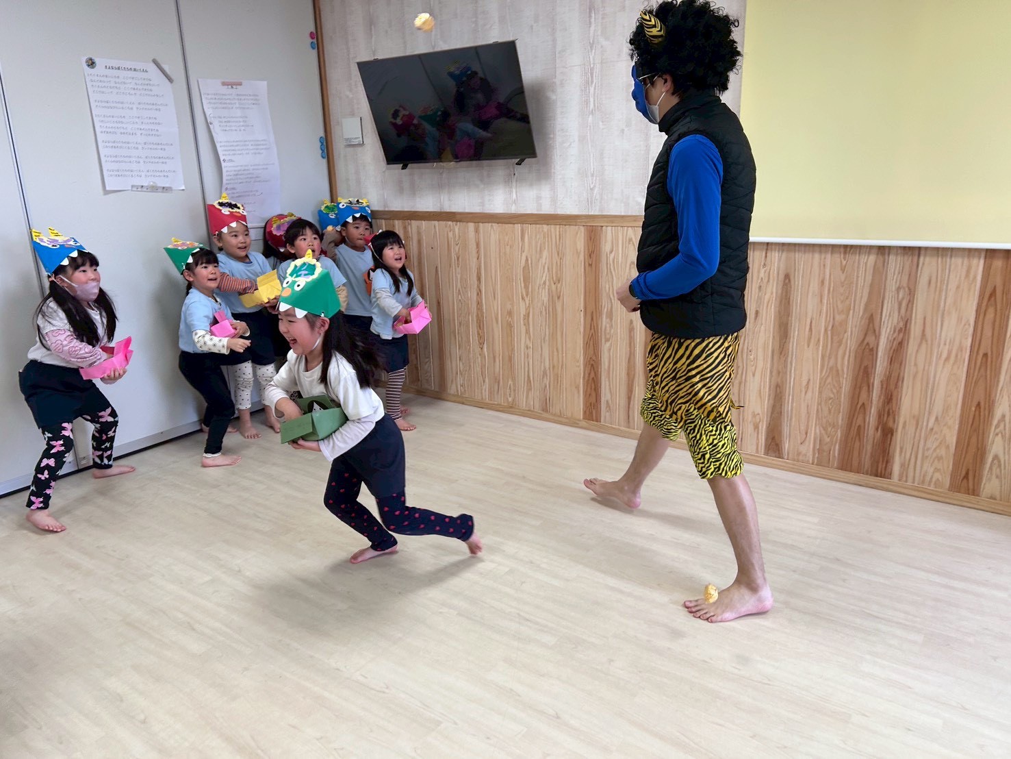 「鬼さん逃げたからいいことあるねー!」と子どもたちと喜び🤩
