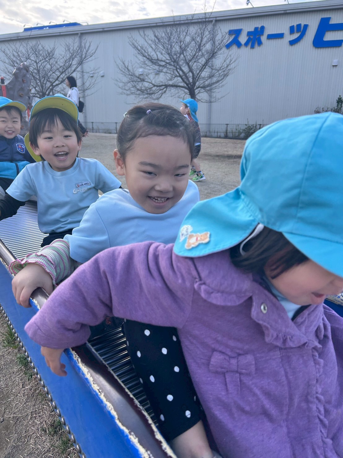 公園へ行く準備も意欲的にできる子が増え、先生が声をかけなくても綺麗に汽車ポッポスタイルで待って並んでいる姿や誘導ロープを掴んで準備して待つ姿に成長が感じられました🥹💓