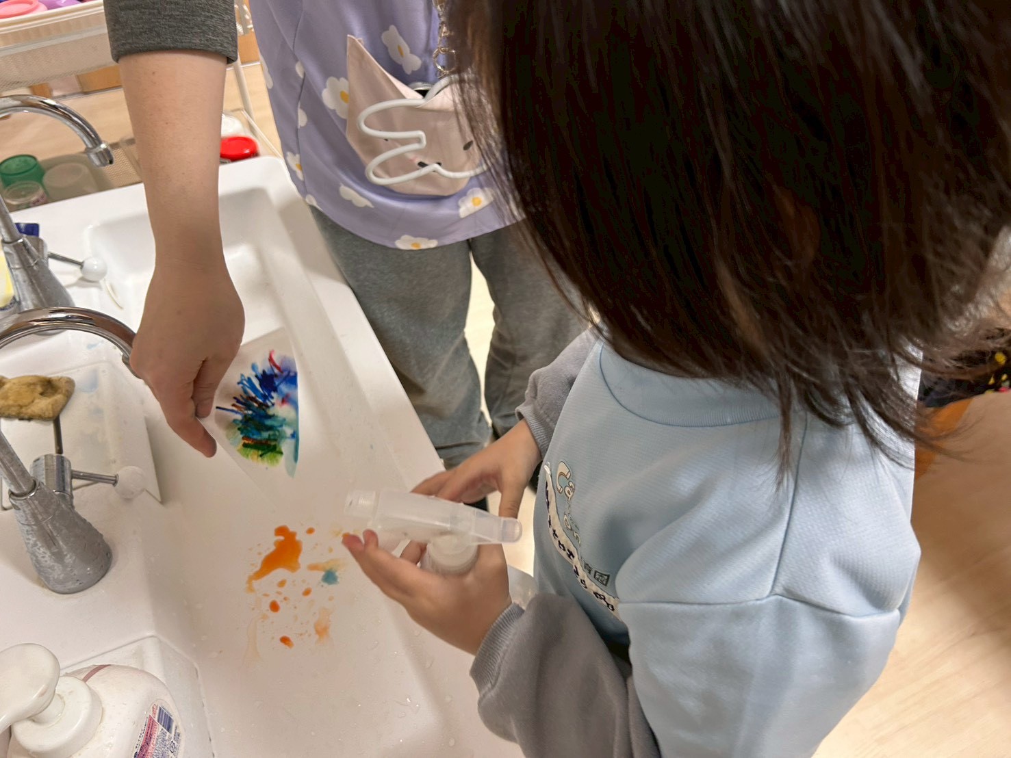 今日はチャリナ先生と英語レッスン🧑‍🏫💓きりん、こあら組さんはバレンタインのチョコレート作りをしました🎶「I love you╰(*´︶`*)╯♡」と思いを込めて好きな色を使って仕上げましたよ💝うさぎ組さんは絵本を読んでもらい、アルファベットや色のカードにも取り組みました❣️
