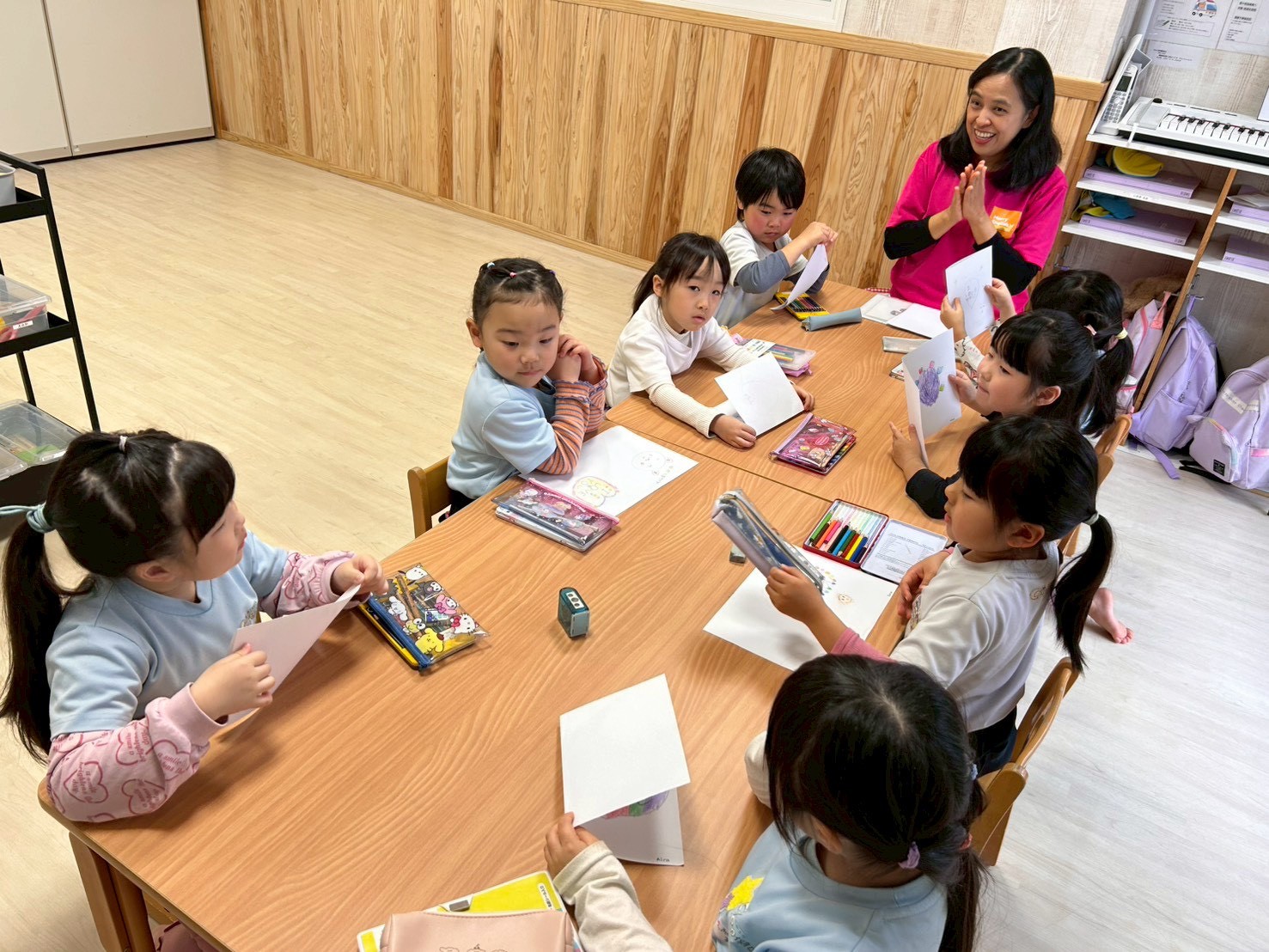 絵本の読み聞かせを十分に楽しんだ後はチャリナ先生の英語レッスン🆎