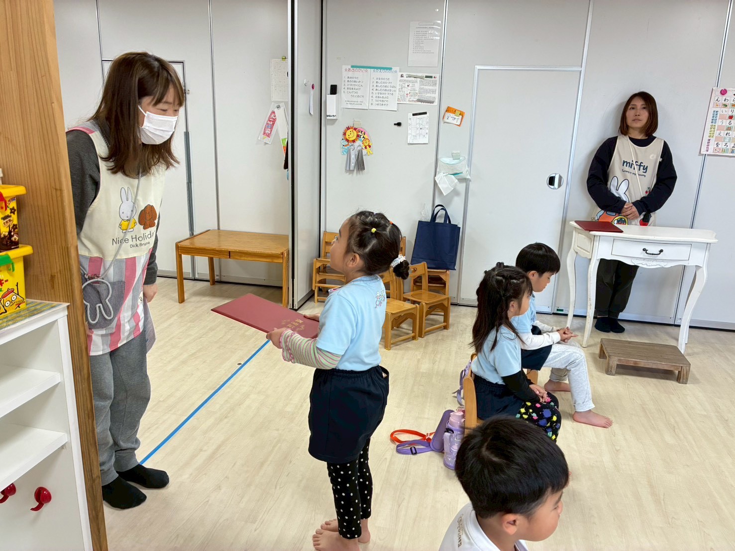 今日も絵本の先生の読み聞かせから保育がスタートしました📚☺️🌟絵本の先生の方に注目しながら反応を楽しんで最後まで見ることができ、しっかりとお礼も伝えることができていて、カッコいい子どもたちでしたよ✨
