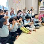 次は、鼻のかみ方指導を看護師の先生にしてもらいました👃「優しく」「ゆっくり」「少しずつ」の約束を守りながら練習しました✨鼻水が出ている子が増えているので、こまめに取れるように心がけていきたいと思います🤗それから散歩の準備をして、みんなで電車を見にいきました🚃‼️歩道橋から電車を見たり、歩道橋でかけっこしたり大盛り上がりでした🤩
