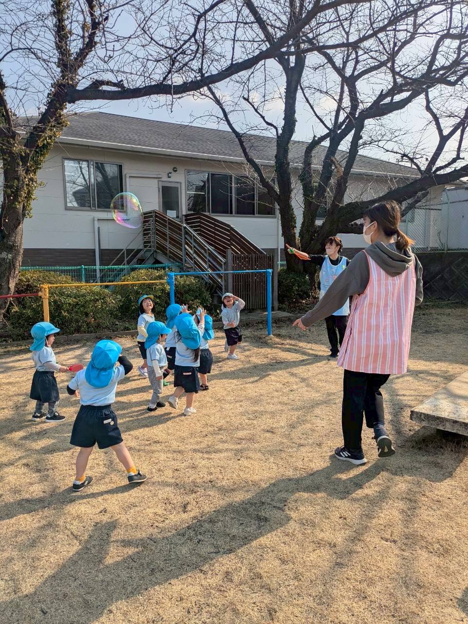 公園では大きなシャボン玉🫧に喜んだり、繰り返し滑り台や砂遊び、ブランコを楽しんでいましたよ🌞