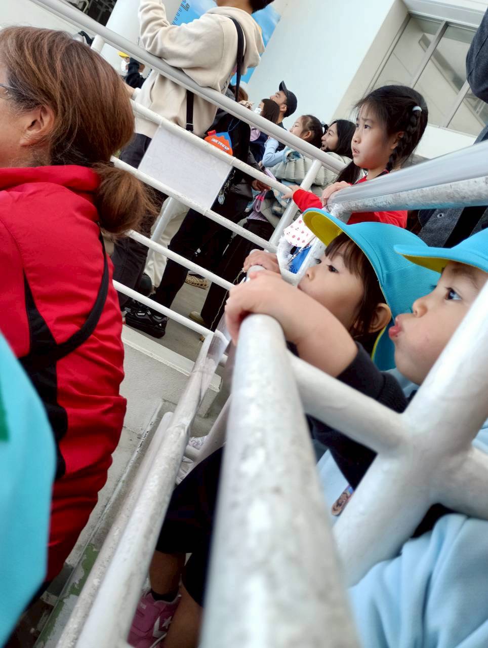 「しゅっぱーつ」の声も弾んでましたよ✨バスから見えるトラックやブルドーザーにも反応してとっても嬉しそうでした😊バスの中ではみんなで海の生き物のお名前を予習🥰して子どもたちの期待もマックスでいざ館内へ✨
