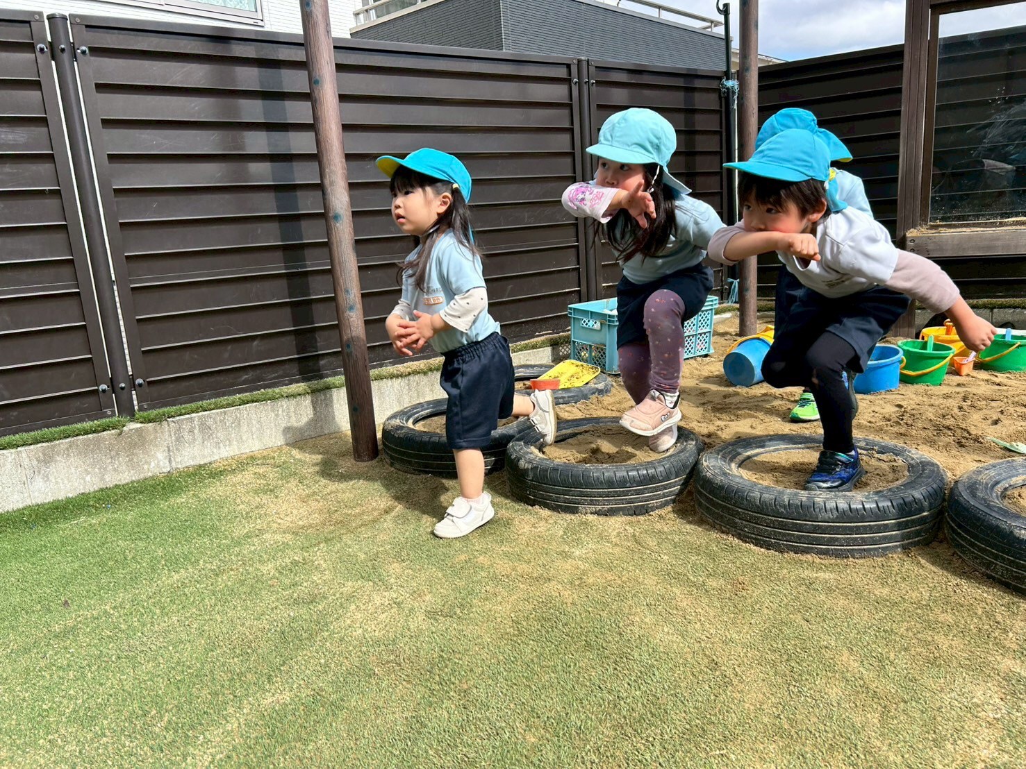 ドキドキ頑張った後は、園庭で気持ちがいい気候の中、上手にボールを投げたり見立て遊びをしながら笑顔いっぱい楽しみましたよ🌞💓【りすぐみ】
