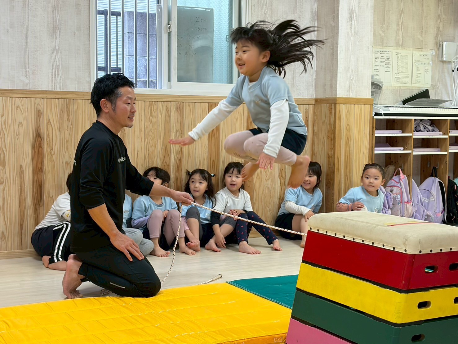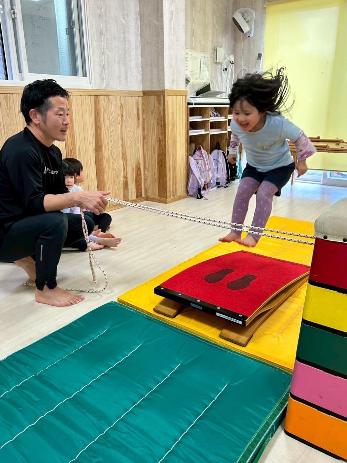 体操教室では大縄をしました🤸うさぎさんはロイター板も使いながらグージャンプで飛び越えましたよ🤗最初は怖がっていた子も最後には思いっきって飛び越えることができていてとってもかっこよかったです💖