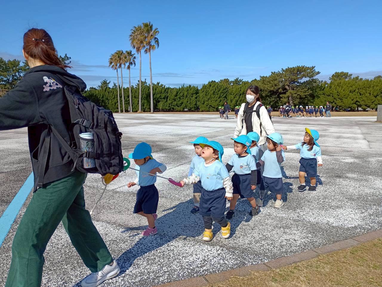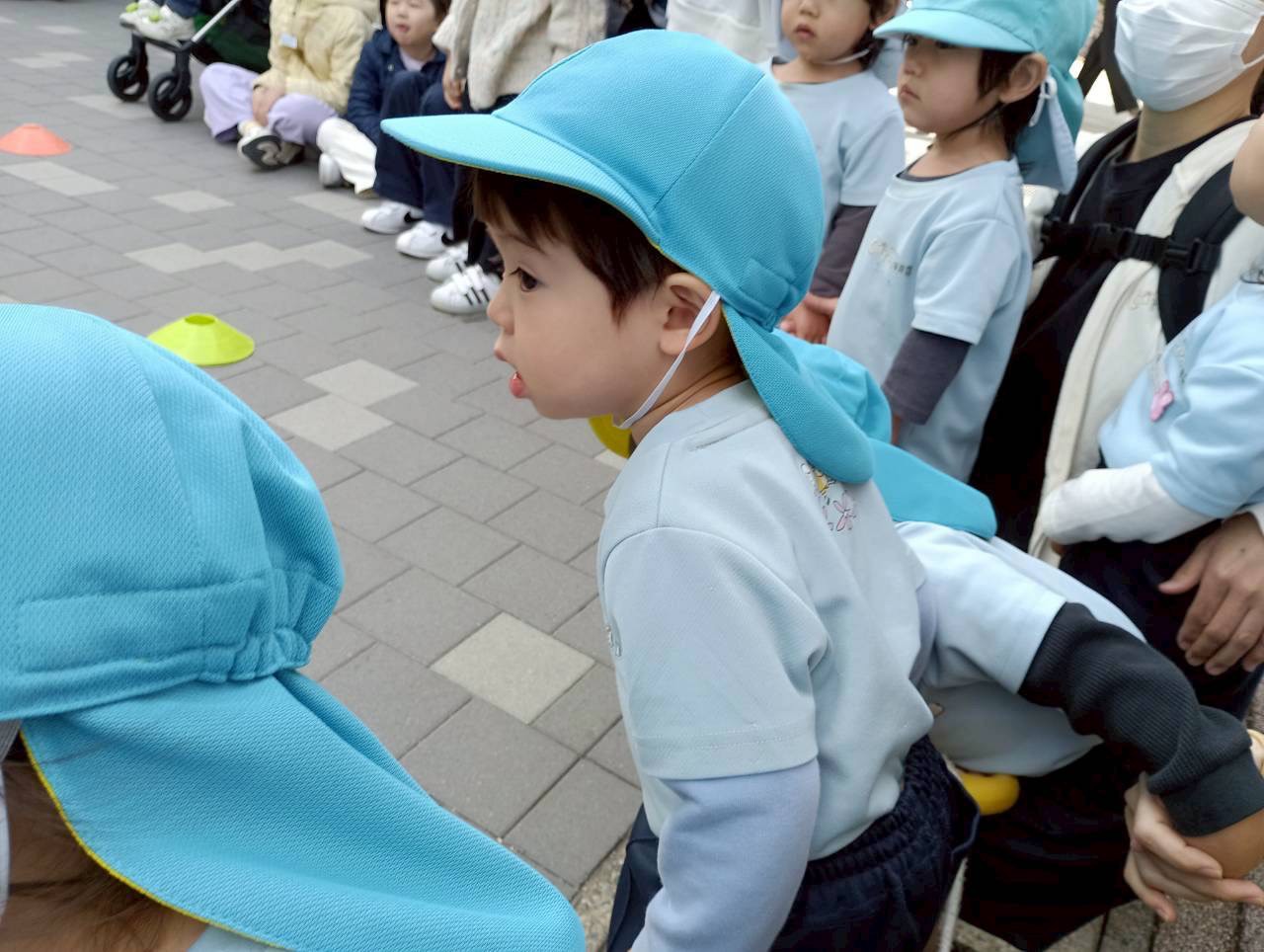 ひよこさんも注目して落ち着いて最後まで見ることができていて、それぞれ真剣な表情で質問にも答えながら話が聞けていましたよ🌟避難中も抱っこされたりしながら先生の声を聞いて泣かずに移動ができ、理解して行動できる子が多く、約束事を意識して行動する姿がたくさん見られて成長が感じられました✨☺️