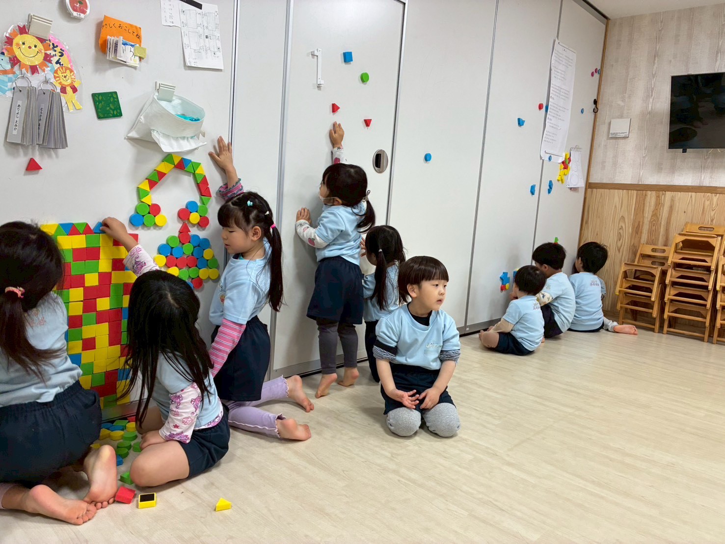 今日から早いもので3月🌸今まで小さい子のお世話をしたり、困っている子に優しく声をかけたりしてくれていたきりんぐみさんですが、これからは就学に向けて集中して活動に参加すること、落ち着いて過ごすことを目的としています😌