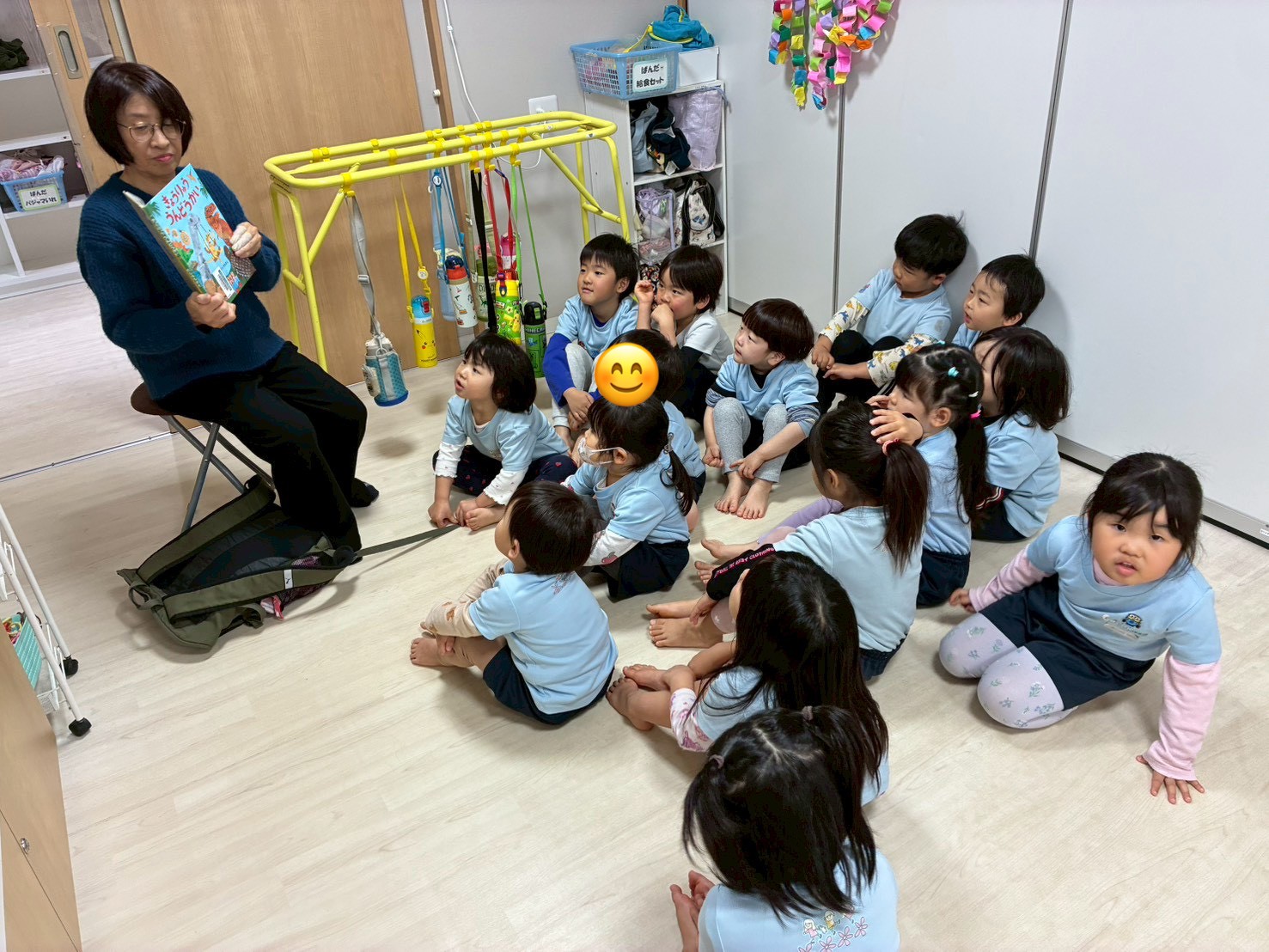 絵本の読み聞かせの時間もしっかりと、体操座りでお話を楽しんでいました