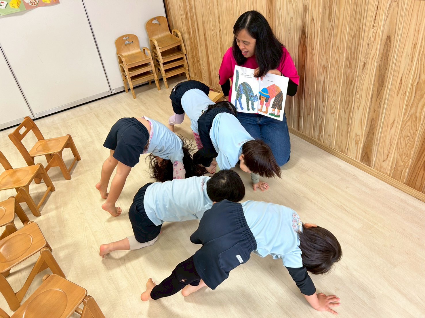 できるかな?の絵本では、動物の動きを「iCan Do It!」と真似っこしました🤗