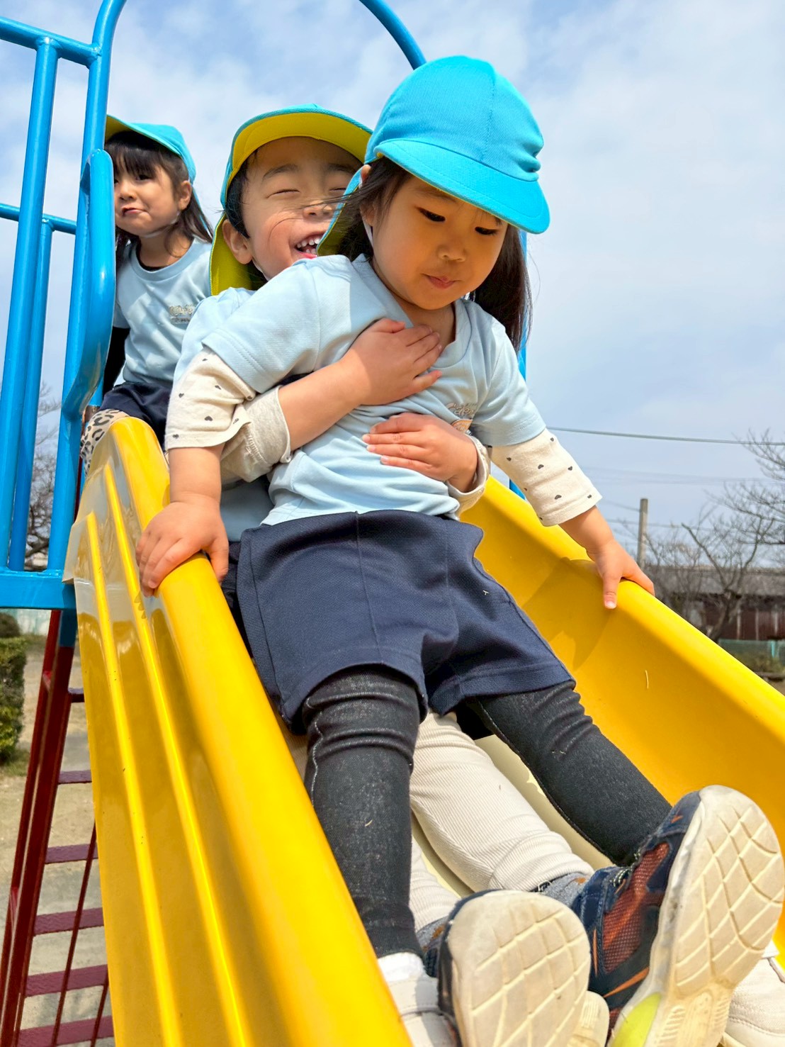 その後はからから積み木や塗り絵で遊びましたが、暖かいので園庭に遊びに出ました❣️