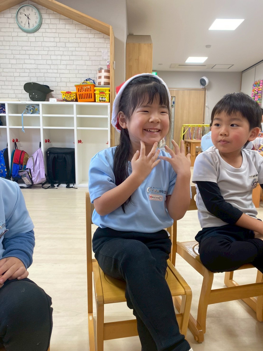 12月16日 2025.12.16 / 未分類 【ひよこ・りすぐみ】 絵本の読み聞かせの後は英語レッスン🔤 アルファベットや数字や色の他に体の英語も学びました✨ 「サンタの帽子を渡して」のゲームもしました。クリスマスソングにあわせてリズムをとる子もいて、チャリナ先生が…続きを読む